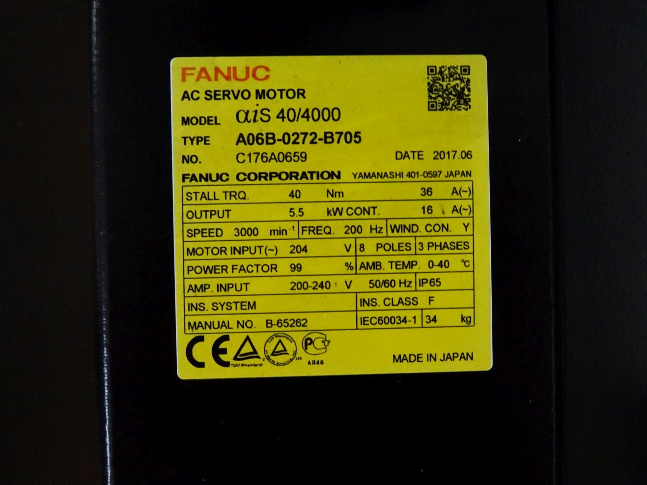 Fanuc AC Servomotor A06B-0272-B705 3000min-1 5.5kW