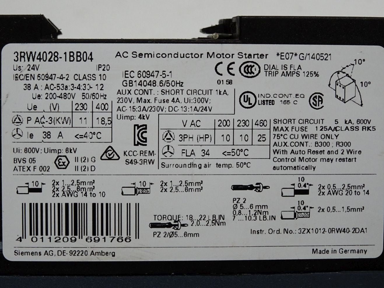 Siemens 3RW4028-1BB04 SIRIUS Sanftstarter