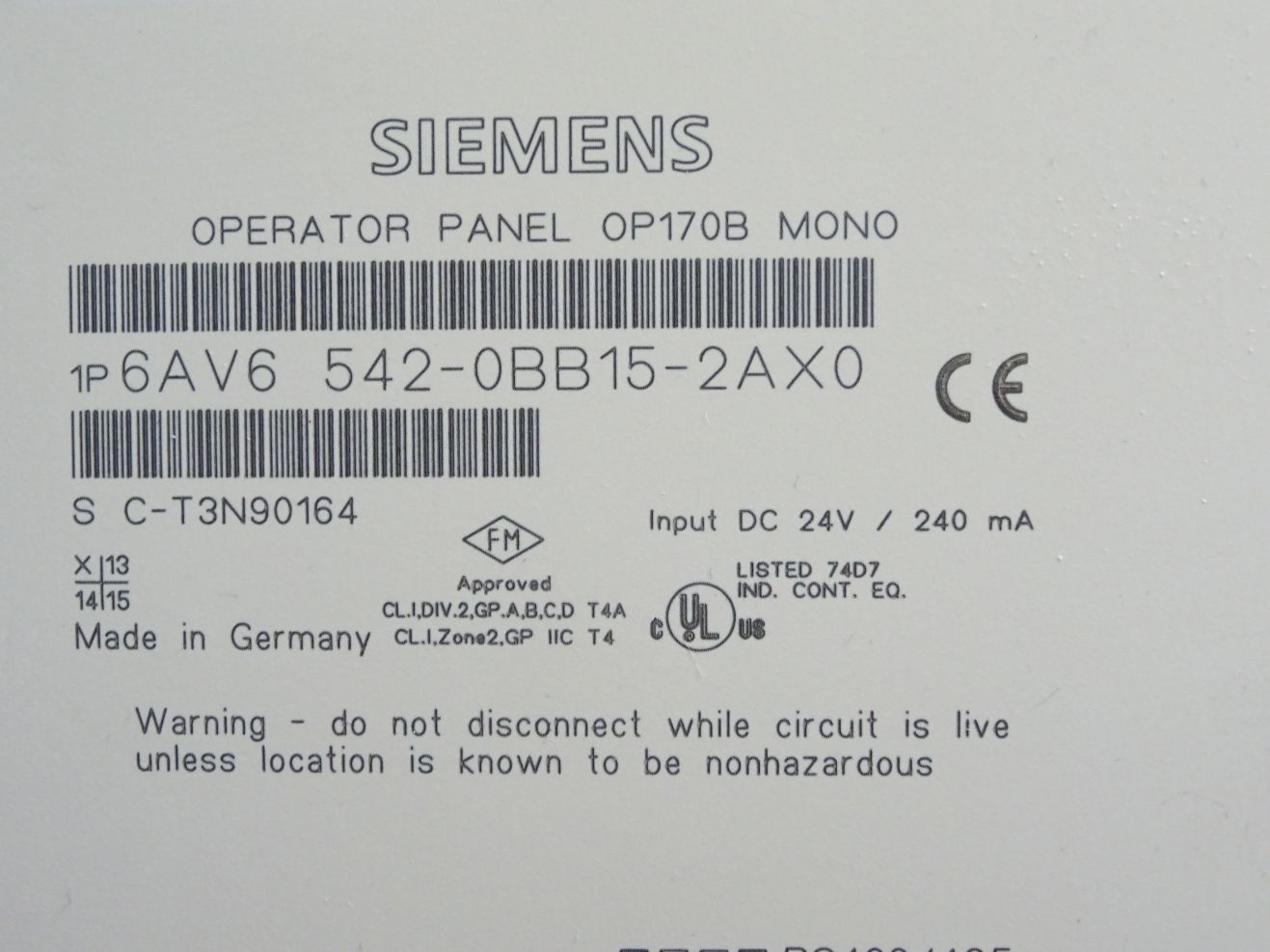 Siemens Panel OP170B 6AV6542-0BB15-2AX0 6AV6 542-0BB15-2AX0