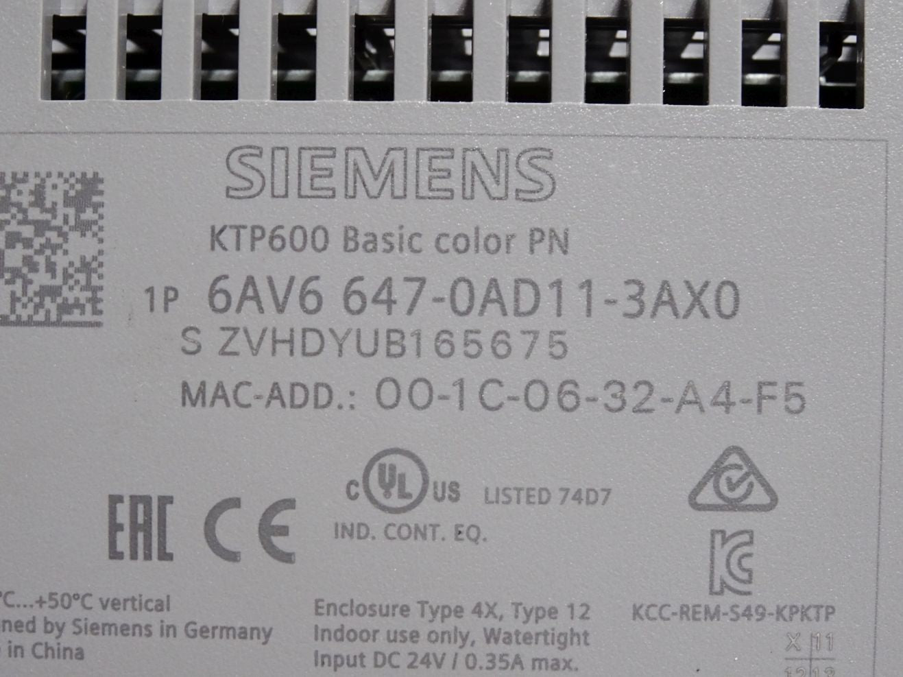 Siemens KTP600 Basic color PN Panel 6AV6647-0AD11-3AX0 6AV6 647-0AD11-3AX0
