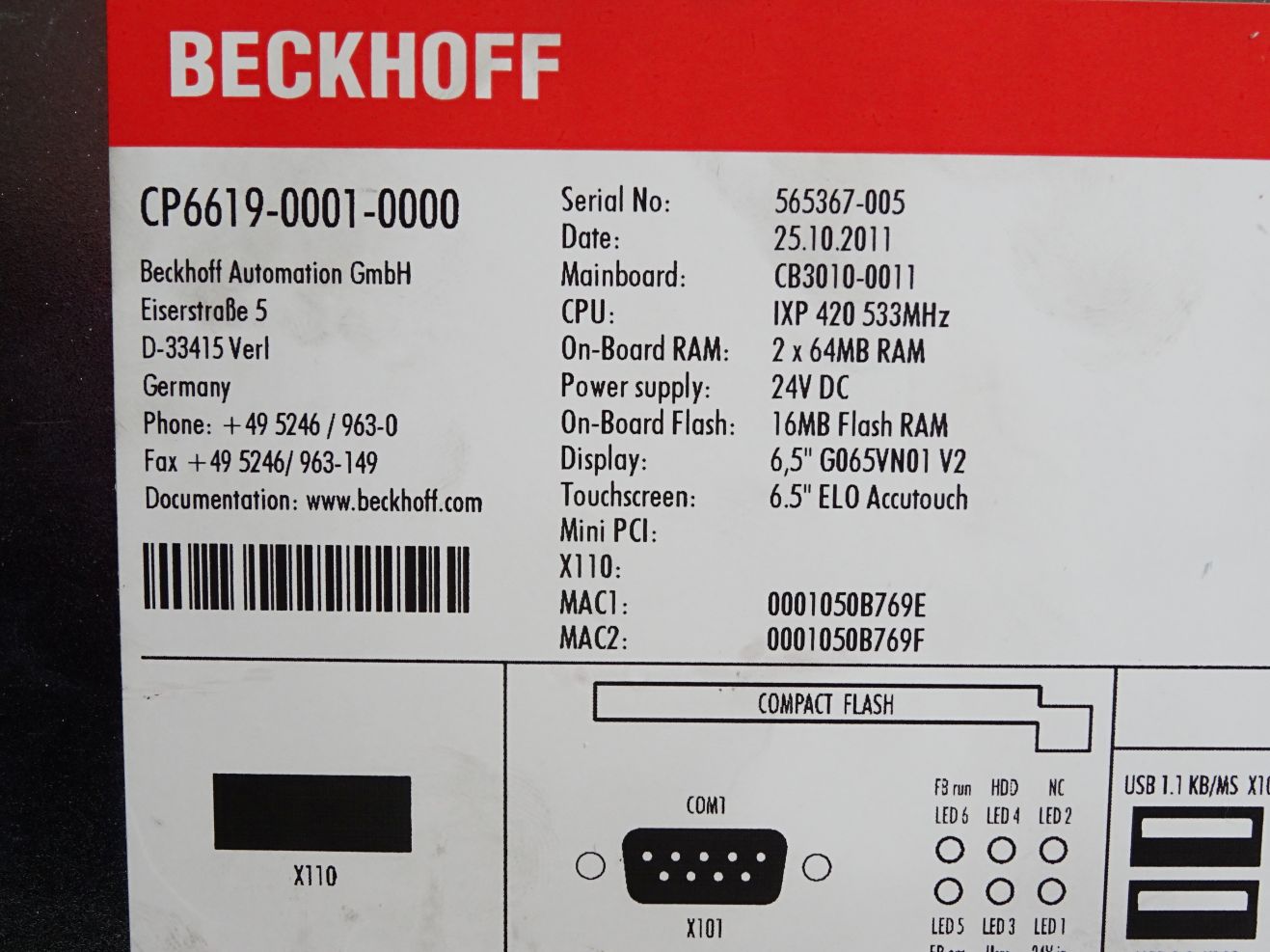 Beckhoff CP6619-0001-0000 Einbau-Panel-PC