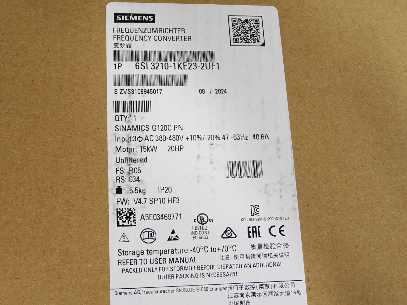 Siemens Sinamics G120C PN 15kW 6SL3210-1KE23-2UF1 Neu OVP versiegelt