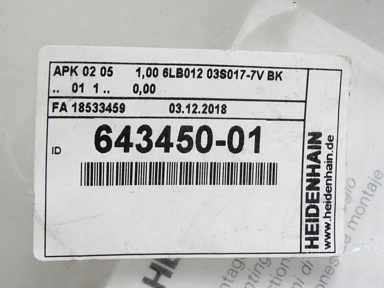 Heidenhain Anschlußkabel 643450-01 / Neu OVP