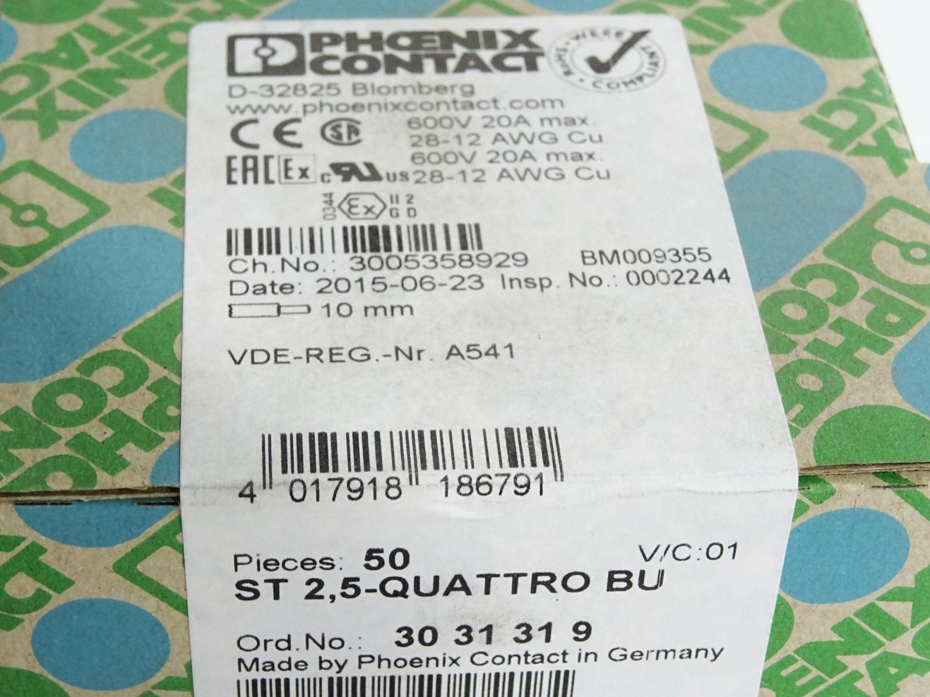 Phoenix Contact 3031319 ST 2,5-QUATTRO BU/ Inhalt:50 Stück / Neu OVP versiegelt