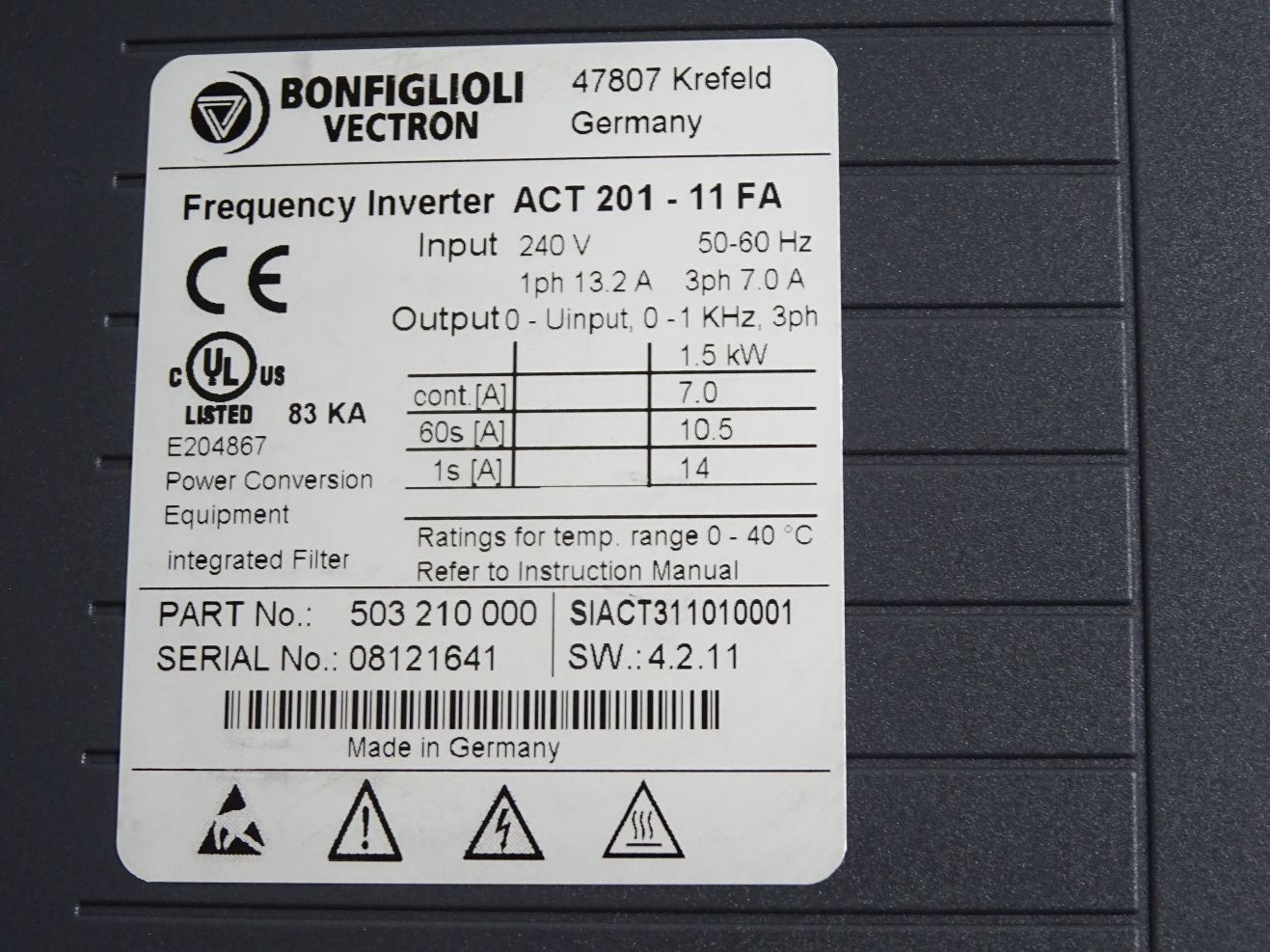 Bonfiglioli Vectron ACT201-11FA Frequency Inverter 1.5kW