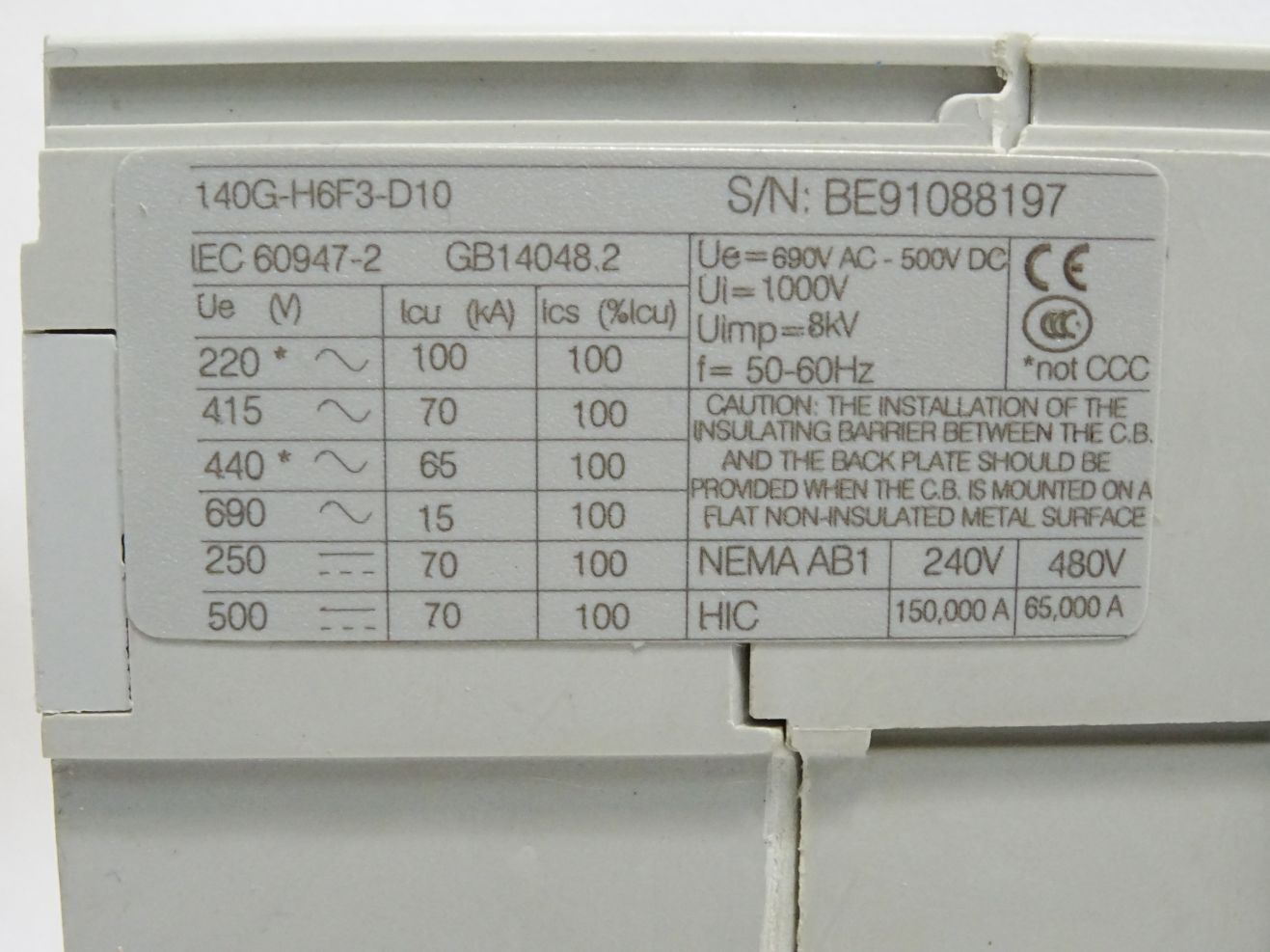Allen Bradley 140G-H6F3-D10 Molded Case Circuit Breaker / Neu OVP
