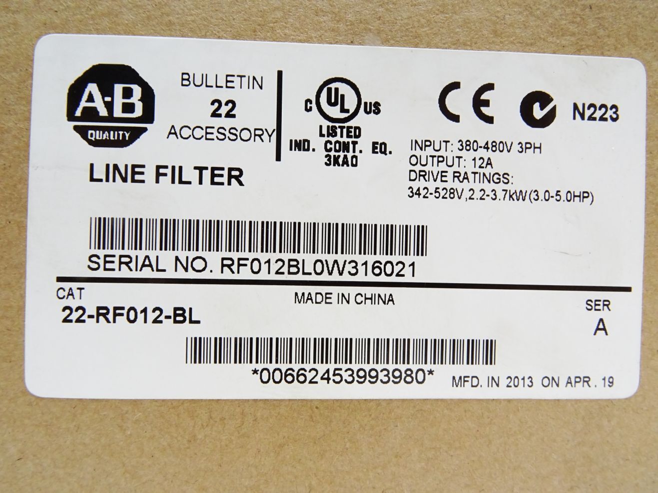 Allen Bradley Line Filter 22-RF012-BL / Neu OVP