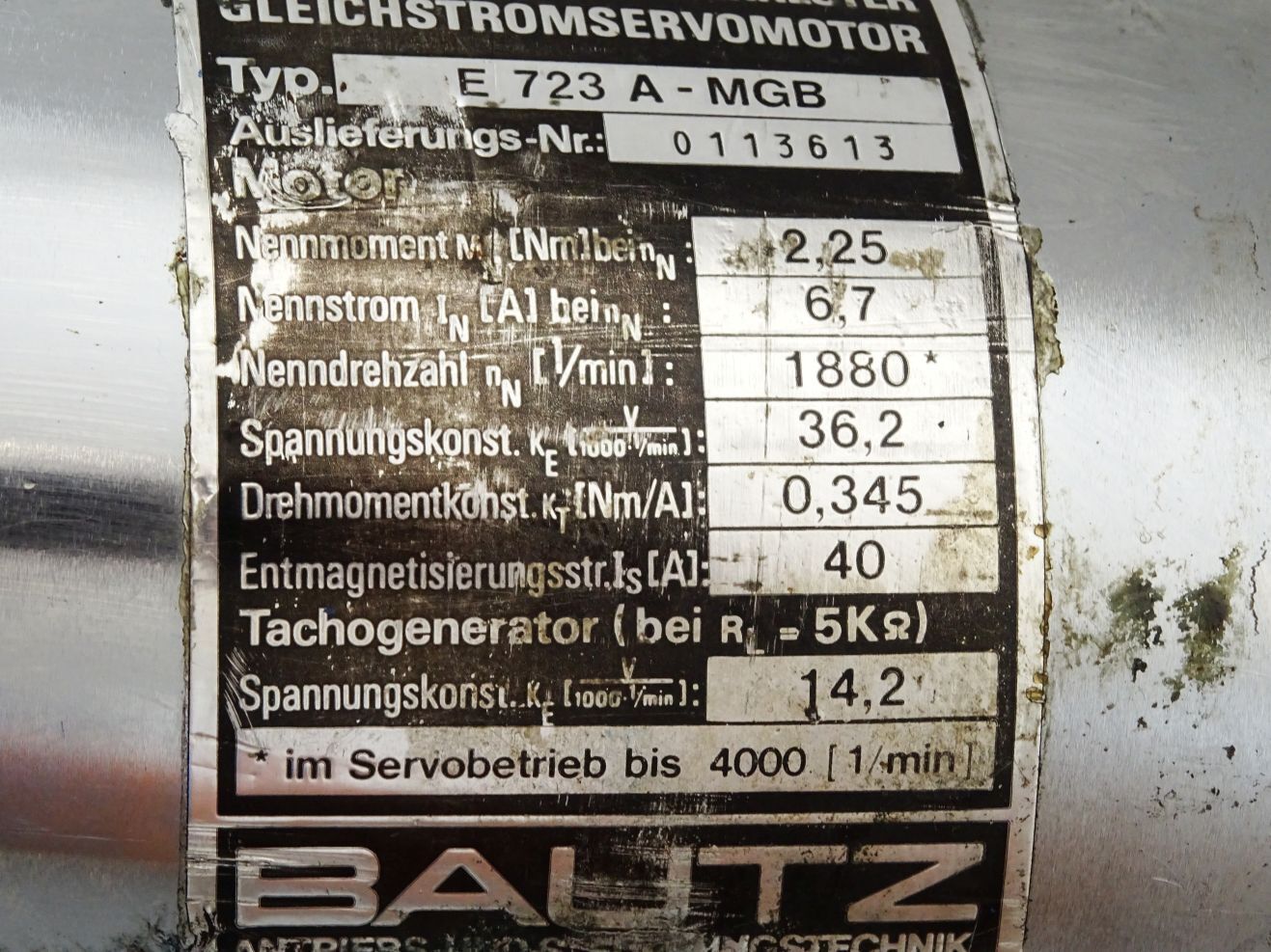 Bautz Gleichstromservomotor Servomotor E723A-MGB 1880/4000min-1