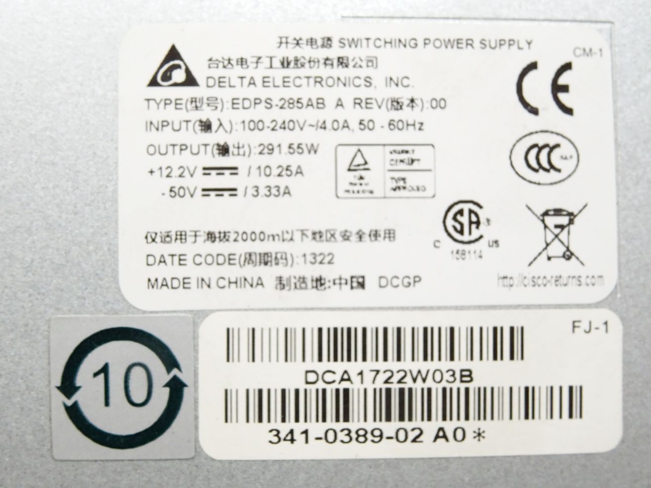 Delta Electronics EDPS-285AB 291.55W Switching Power Supply