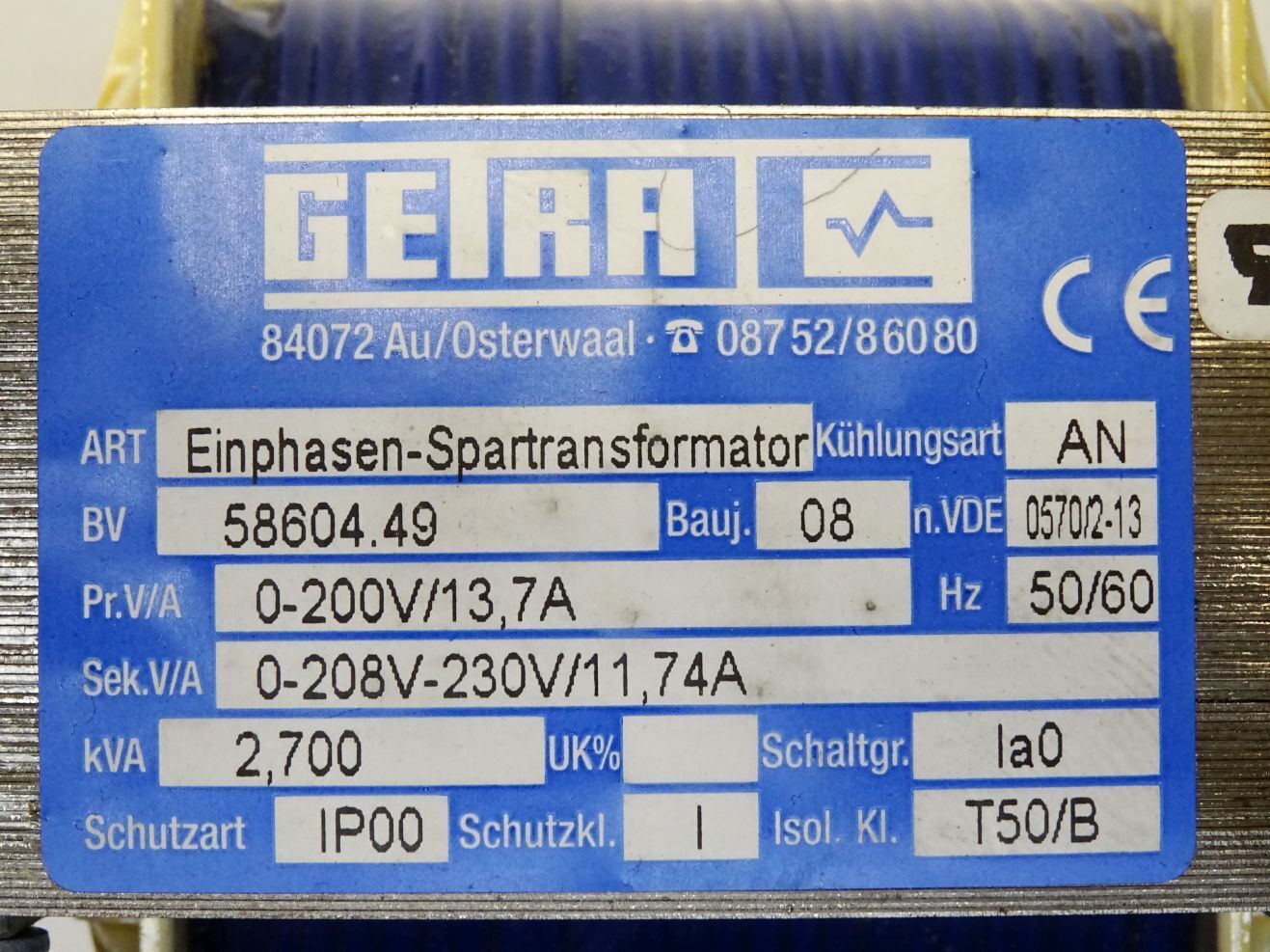 Getra Trafo Einphasen-Spartransformator 58604.49 0-200V 13.7A 0-208V-230V 11.74A 2.700kVA