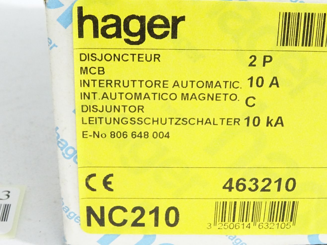 Hager Leitungsschutzschalter NC210 C10 463210 / Inhalt : 1 Stück / Neu