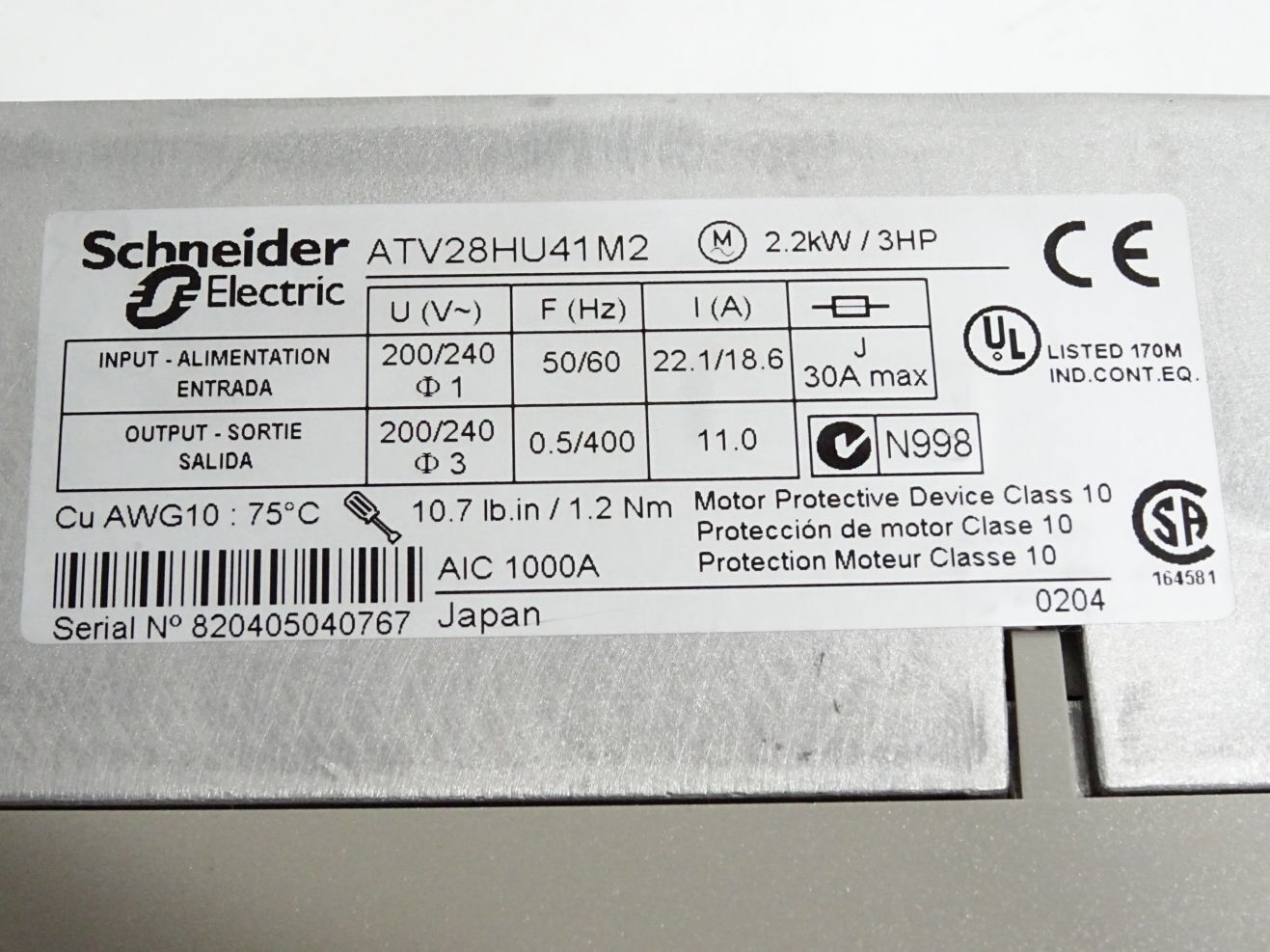 Schneider Electric ATV28HU41M2 2.2kW speed drive