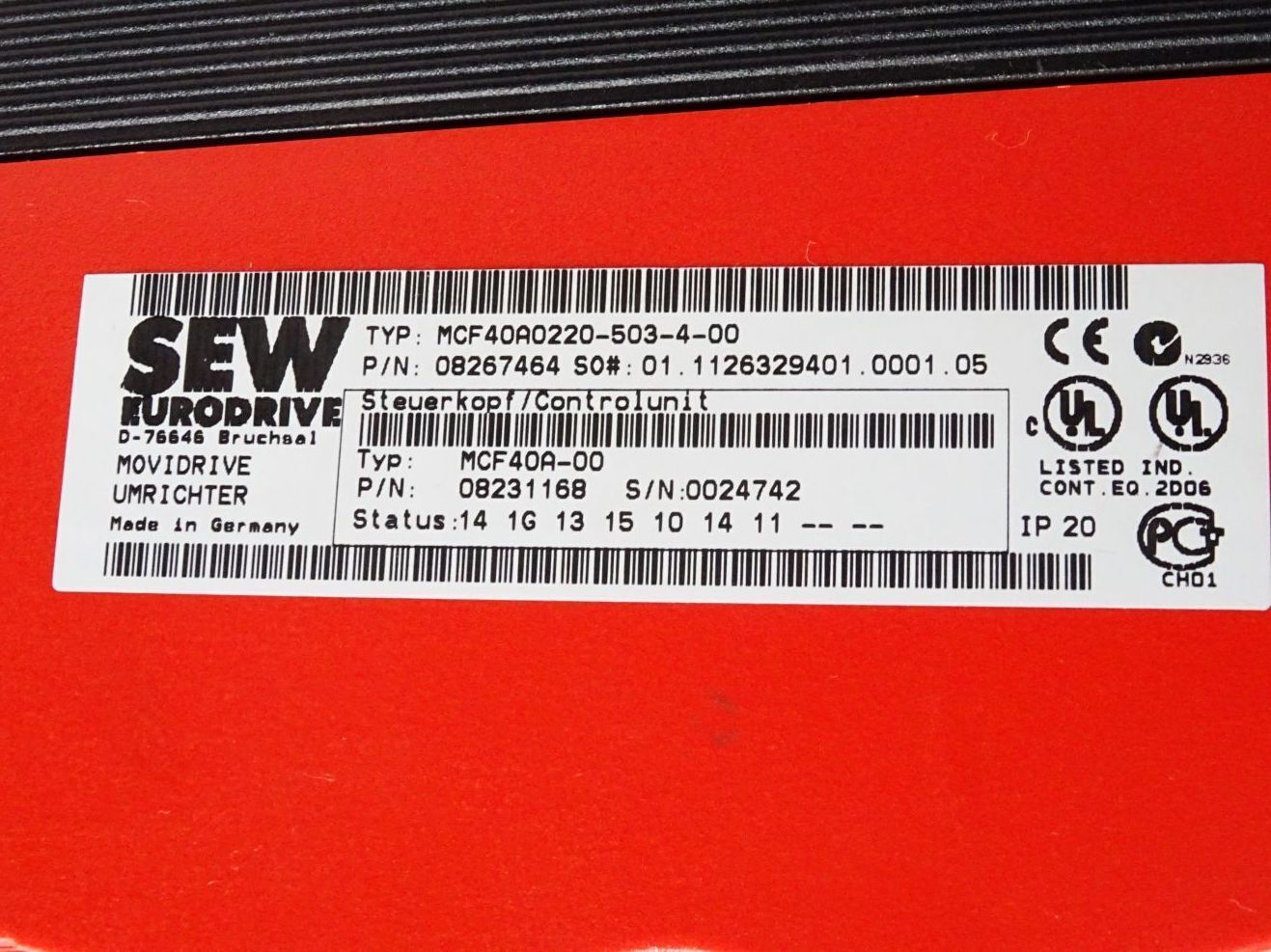 SEW Eurodrive Movidrive Umrichter 22kW MCF40A0220-503-4-00 08267464 Steuerkopf MCF40A-00 08231168
