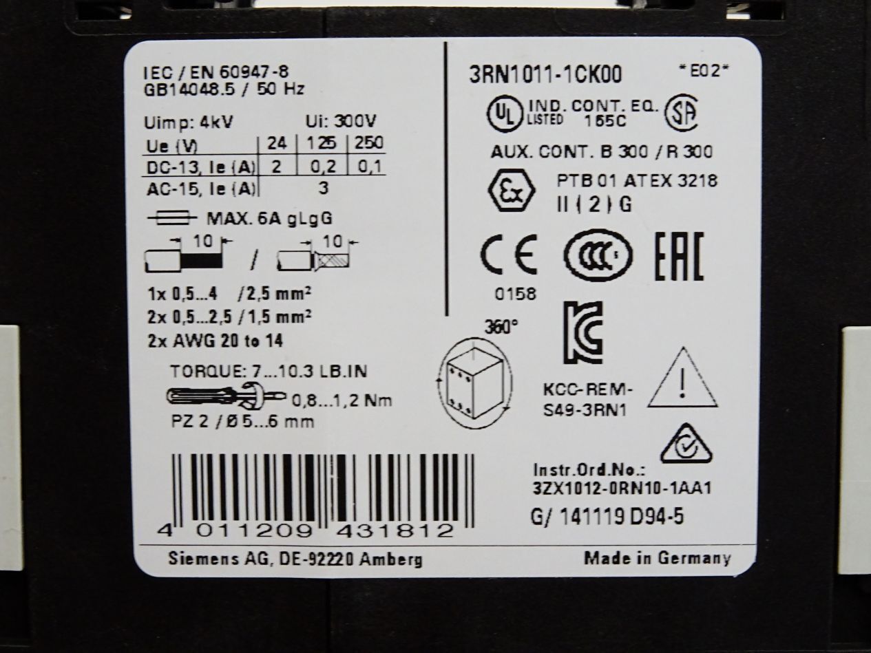 Siemens 3RN1011-1CK00 Thermistor-Motorschutz