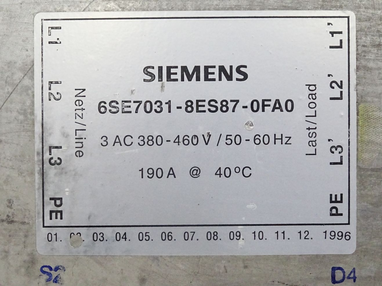 Siemens 6SE7031-8ES87-0FA0 Simovert Masterdrives Funkentstörfilter