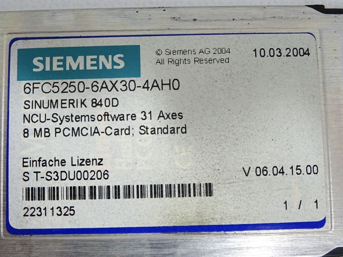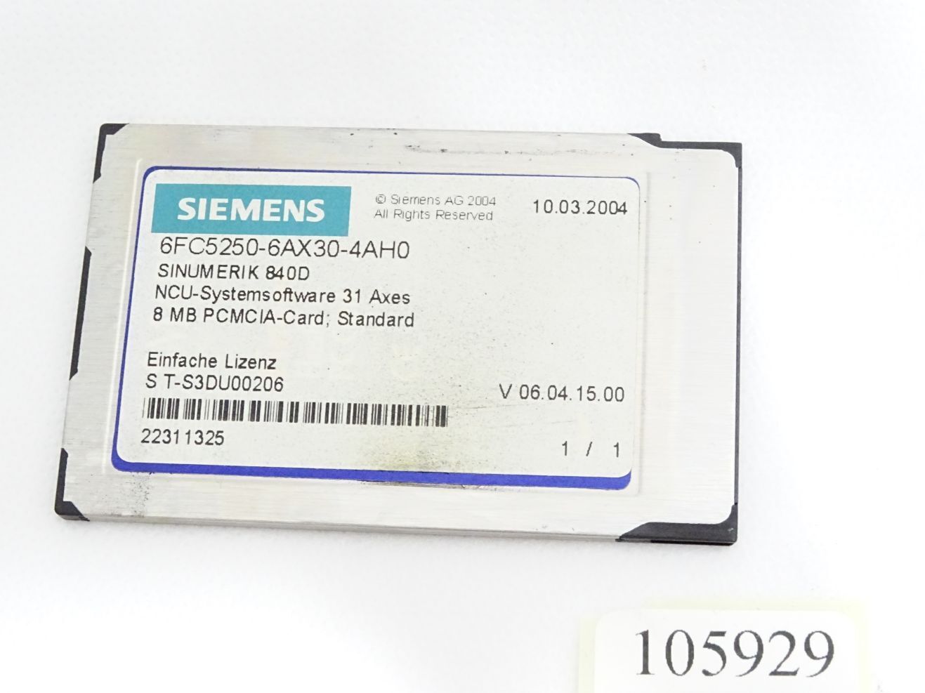 Siemens 8MB PCMCIA-Card 6FC5250-6AX30-4AH0 NCU Systemsoftware