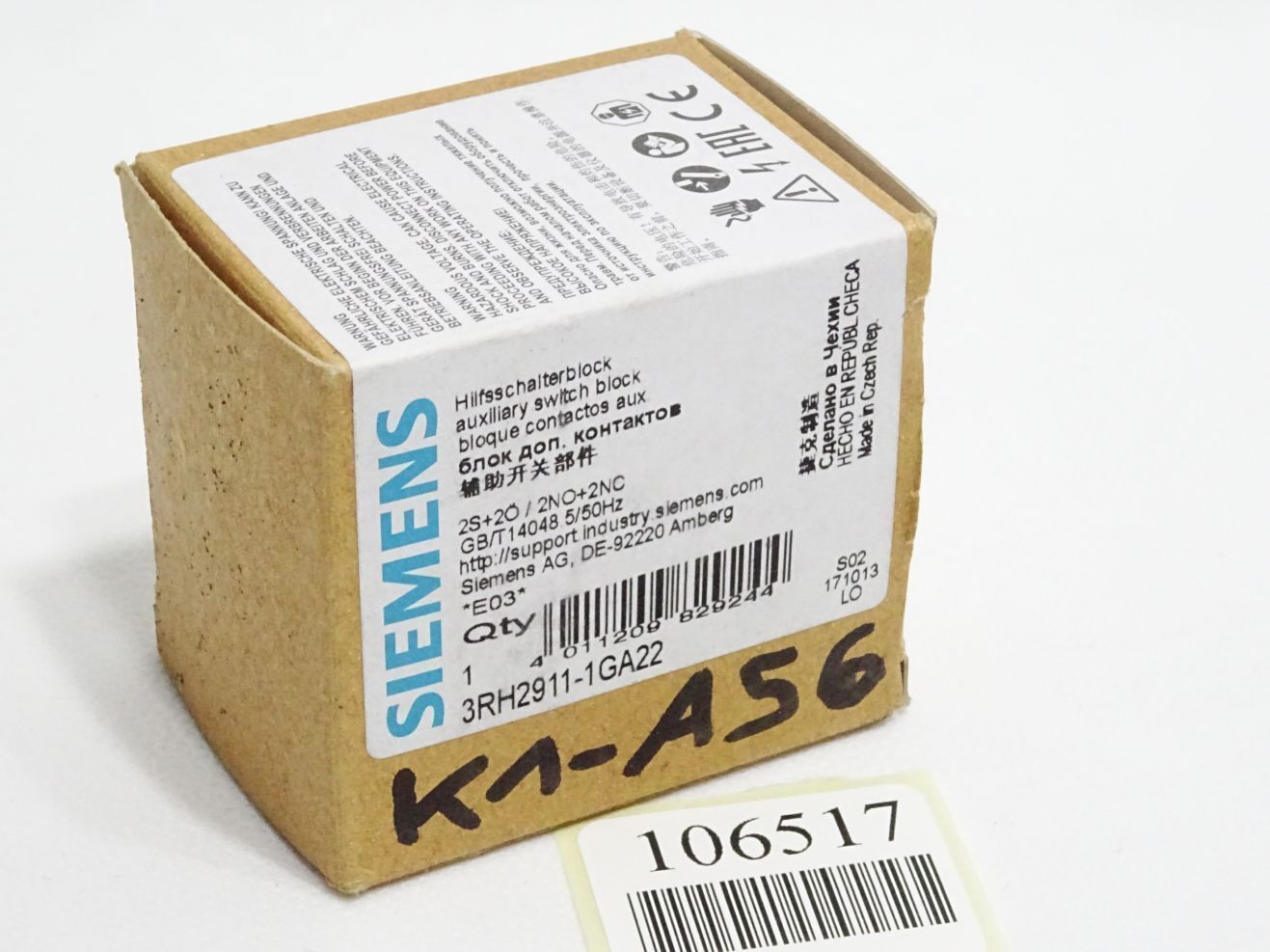 Siemens Hilfsschalterblock 3RH2911-1GA22 / Neu OVP
