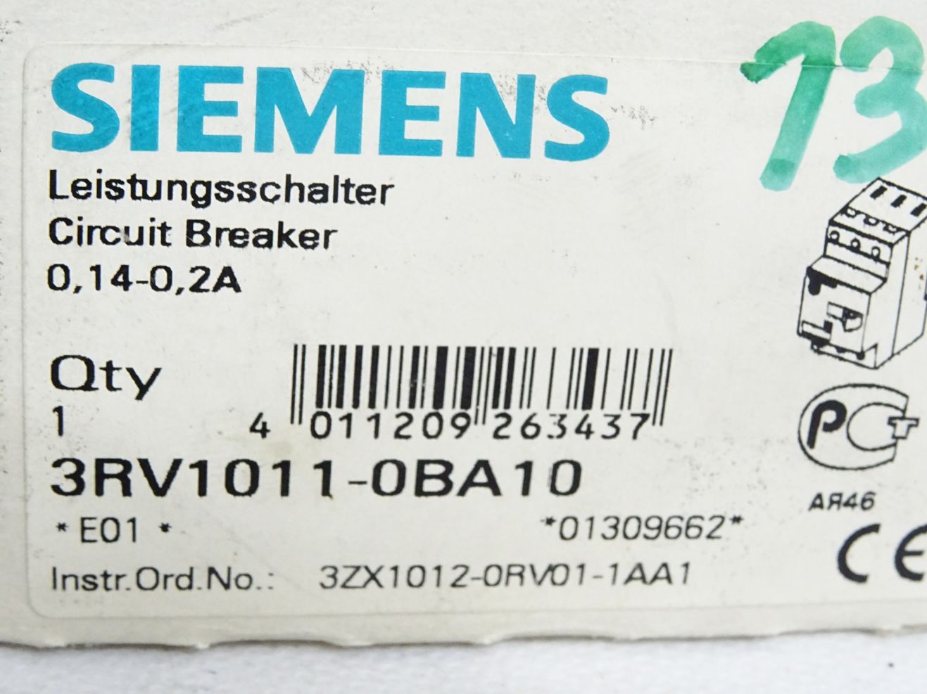 Siemens Leistungsschalter 3RV1011-0BA10 / Neu OVP