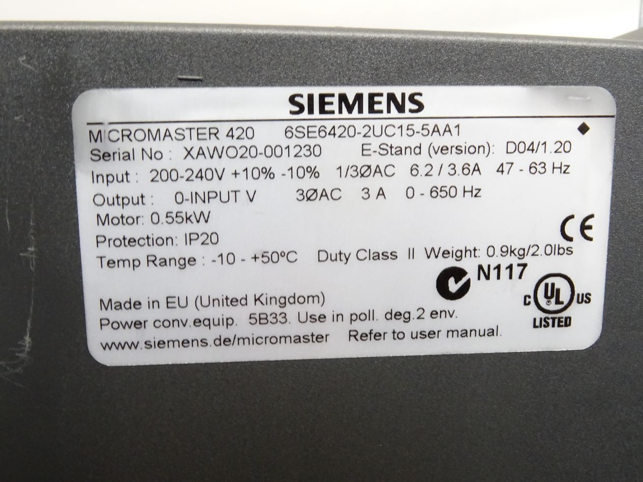 Siemens Micromaster420 6SE6420-2UC15-5AA1 6SE6 420-2UC15-5AA1 0.55kW 6SE6400-2FL01-0AB0