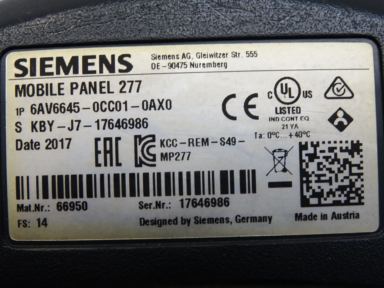 Siemens Mobile Panel 277 6AV6645-0CC01-0AX0 6AV6645-0CC01-0AX0