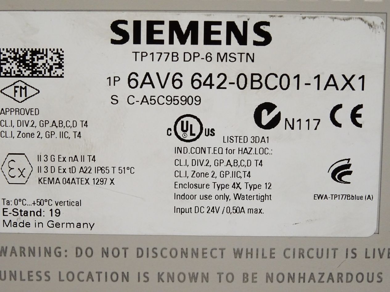 Siemens Panel TP177B DP-6 MSTN 6AV6642-0BC01-1AX1