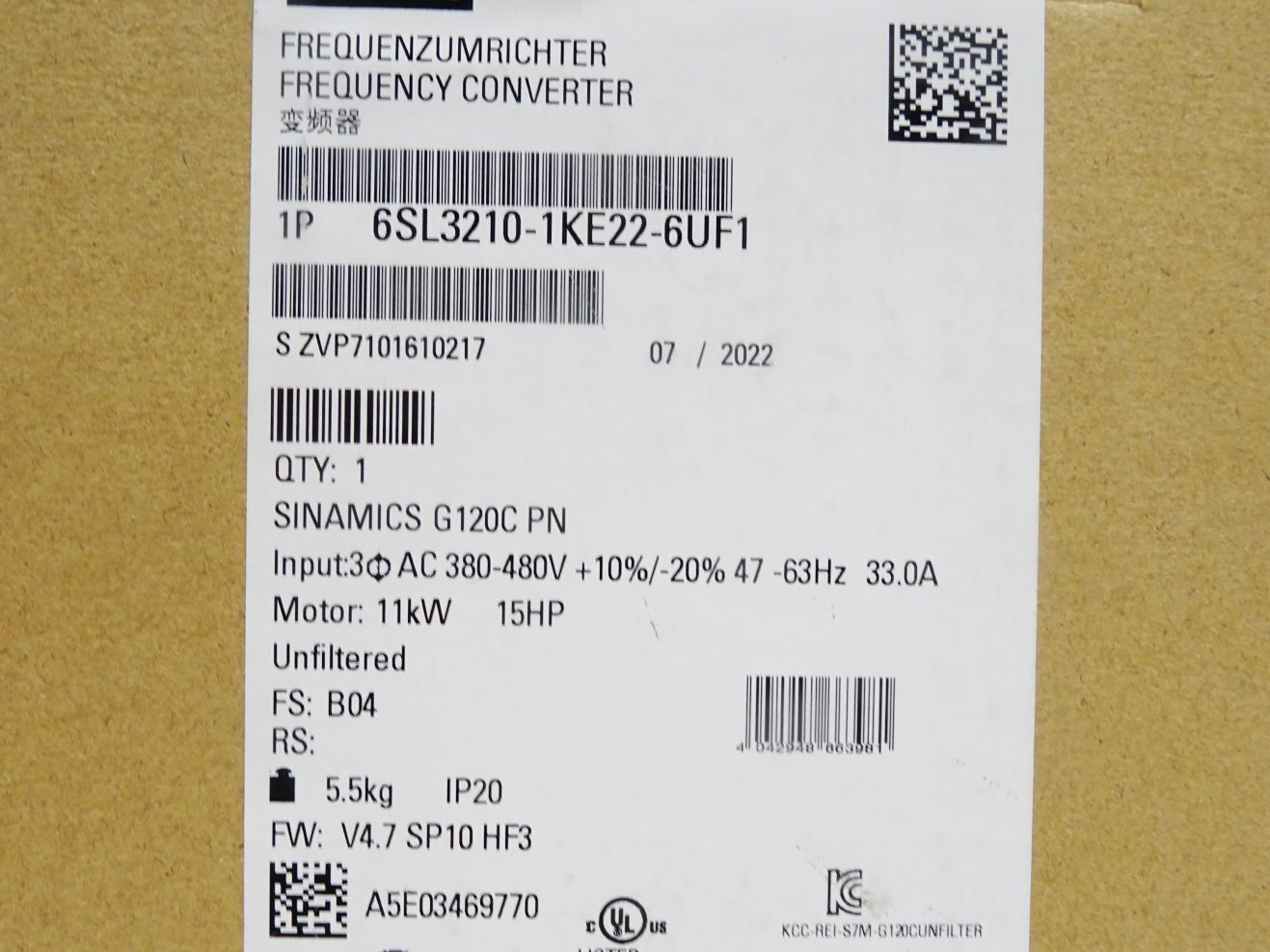 Siemens Sinamics G120C 6SL3210-1KE22-6UF1 6SL3 210-1KE22-6UF1 / Neu OVP versiegelt
