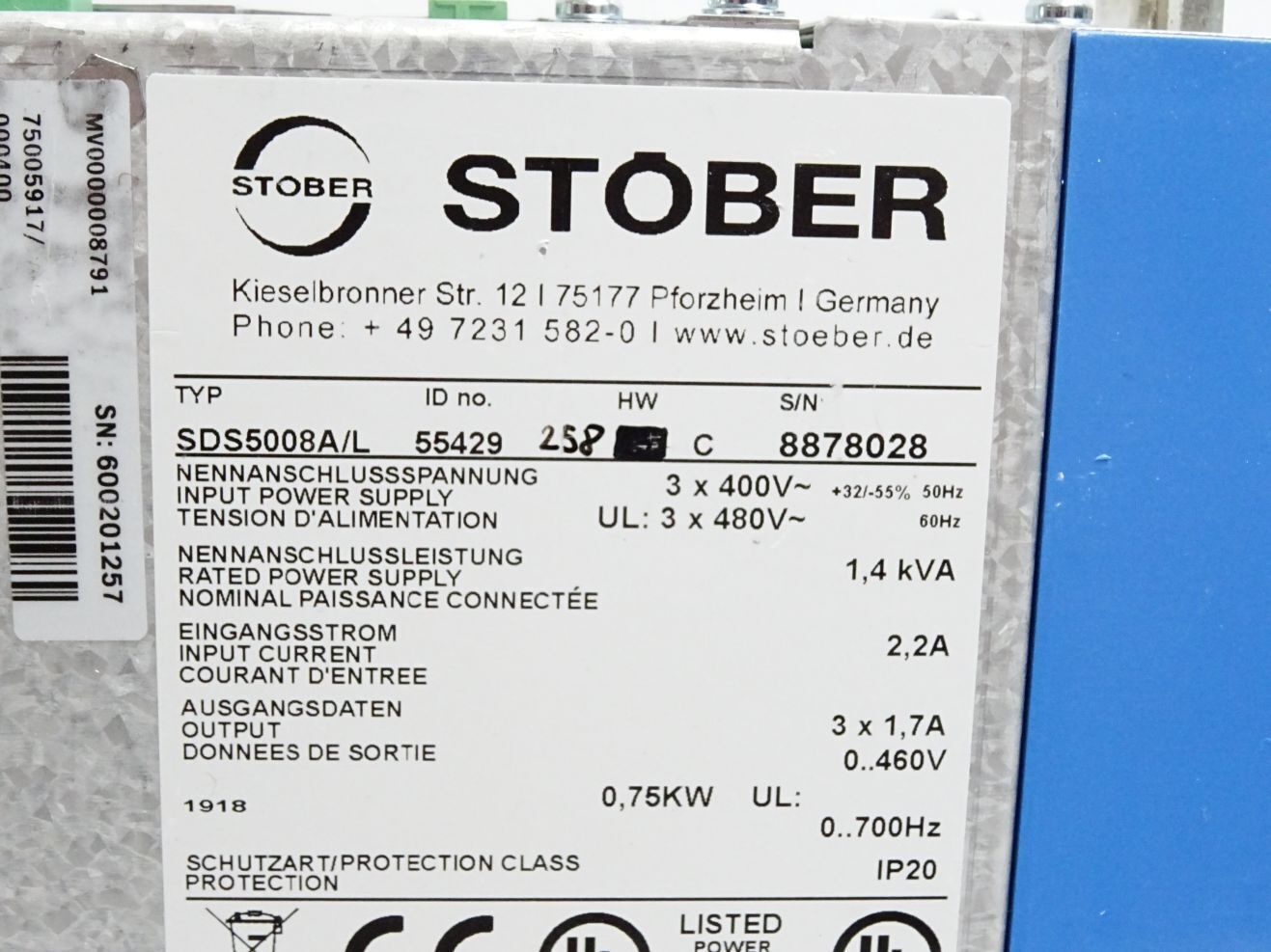 Stöber Servoumrichter SDS5008A/L 55429 0.75kW DP5000 44575