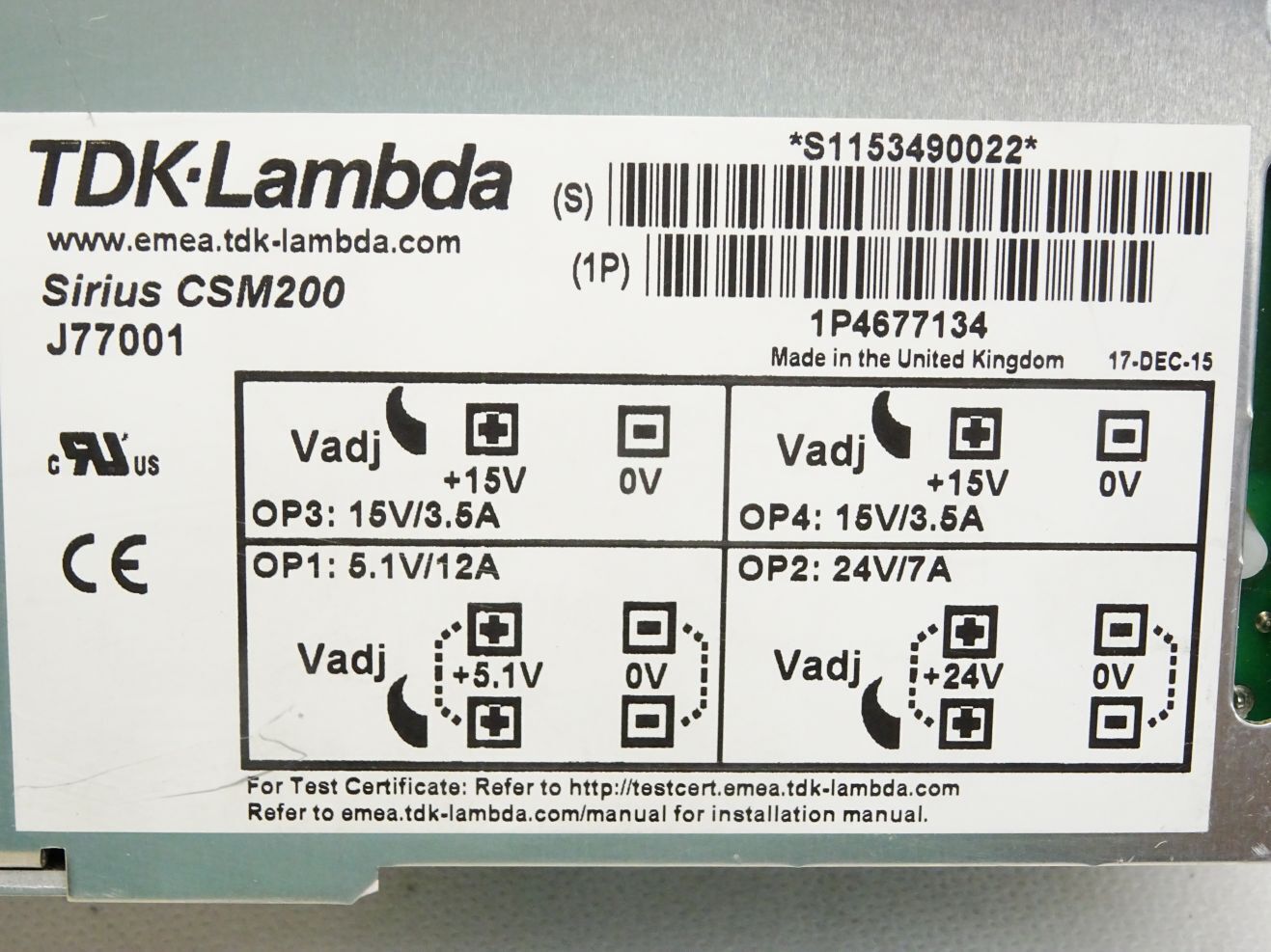 TDK-Lambda Sirius CSM200 J77001 Modular Power Supply