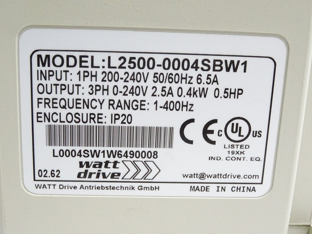Watt Drive L2500 ECO-Line L2500-0004SBW1 0.4kW Frequenzumrichter / Neuwertig
