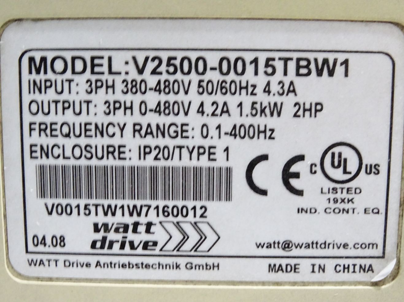 Watt Drive V2500 OPTI-Line V2500-0015TBW1 1.5kW Frequenzumrichter