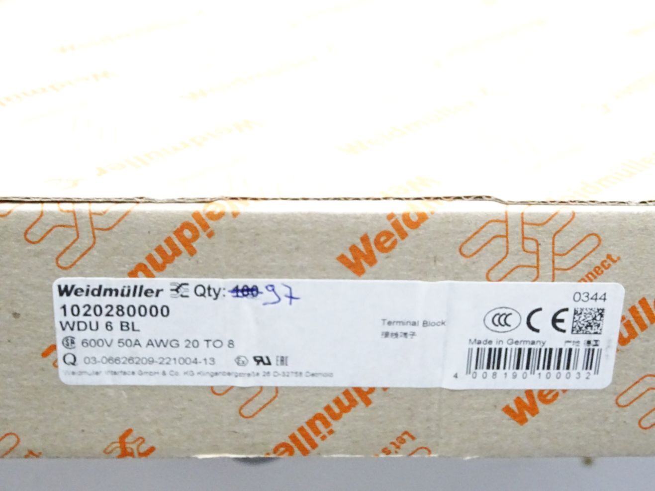 Weidmüller 1020280000 WDU 6 BL Durchgangs-Reihenklemme / Inhalt:97 Stück / Neu OVP
