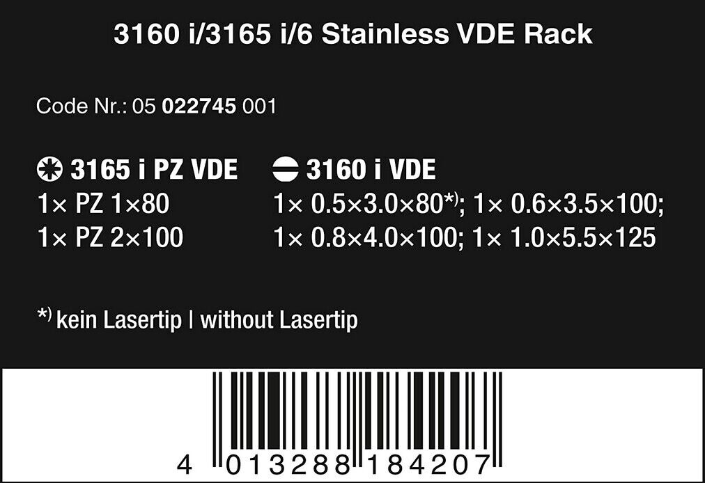 Wera 05022745001 Schraubendrehersatz 3165 i/6 Edelstahl + Rack VDE