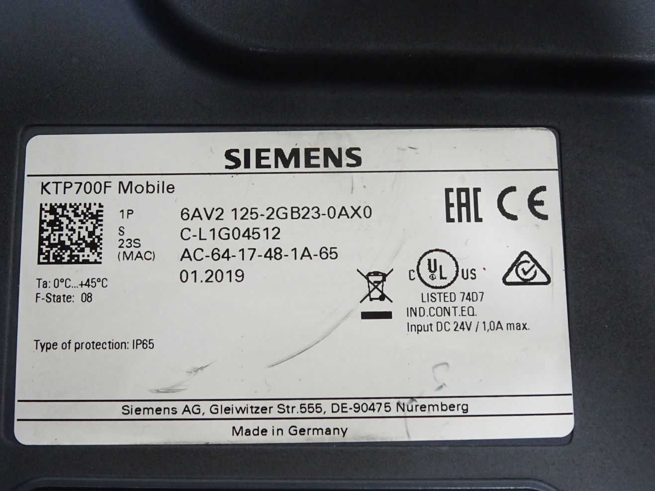 Siemens KTP700F Mobile Panel 6AV2125-2GB23-0AX0 6AV2 125-2GB23-0AX0 / Erneuert