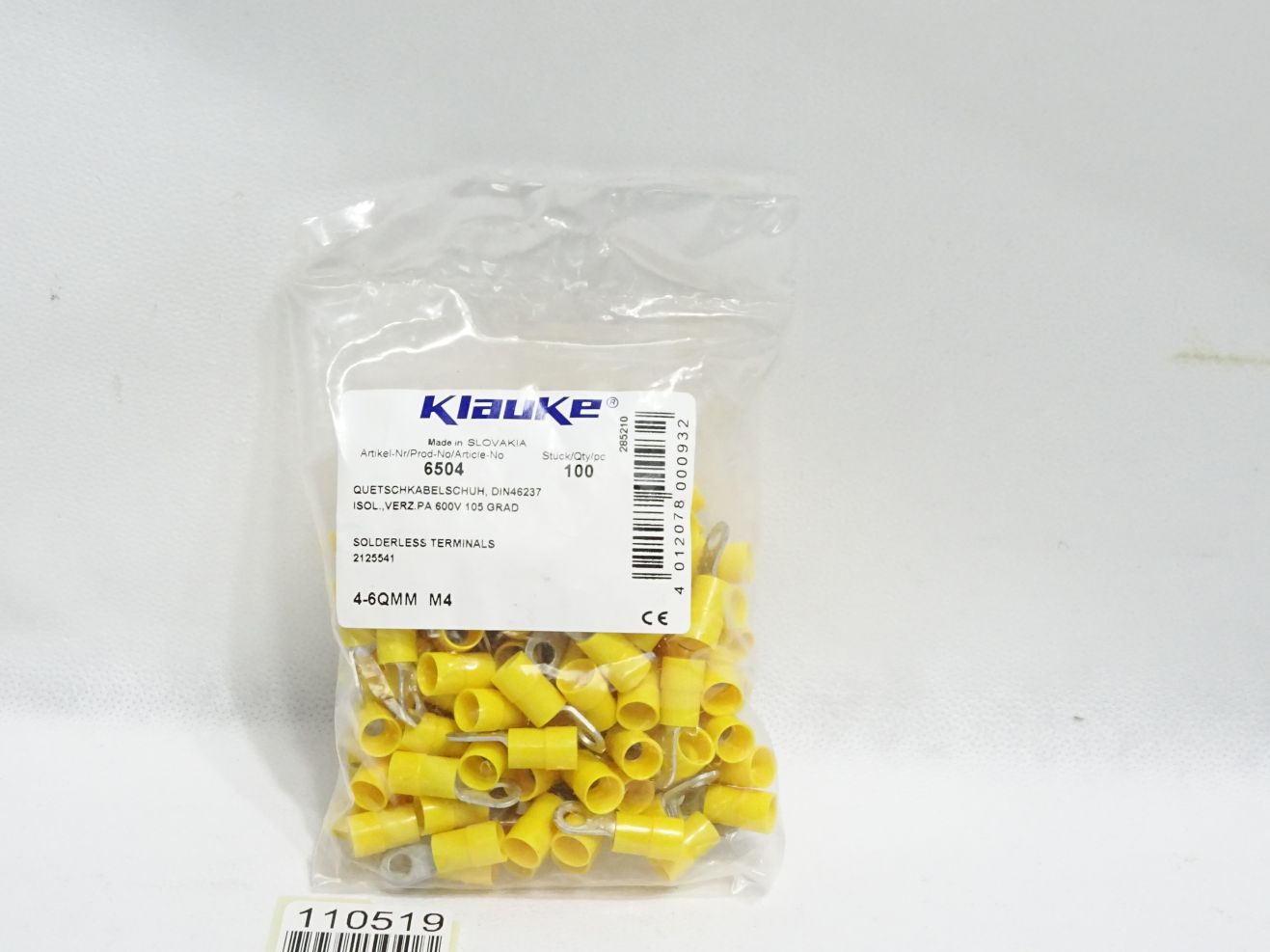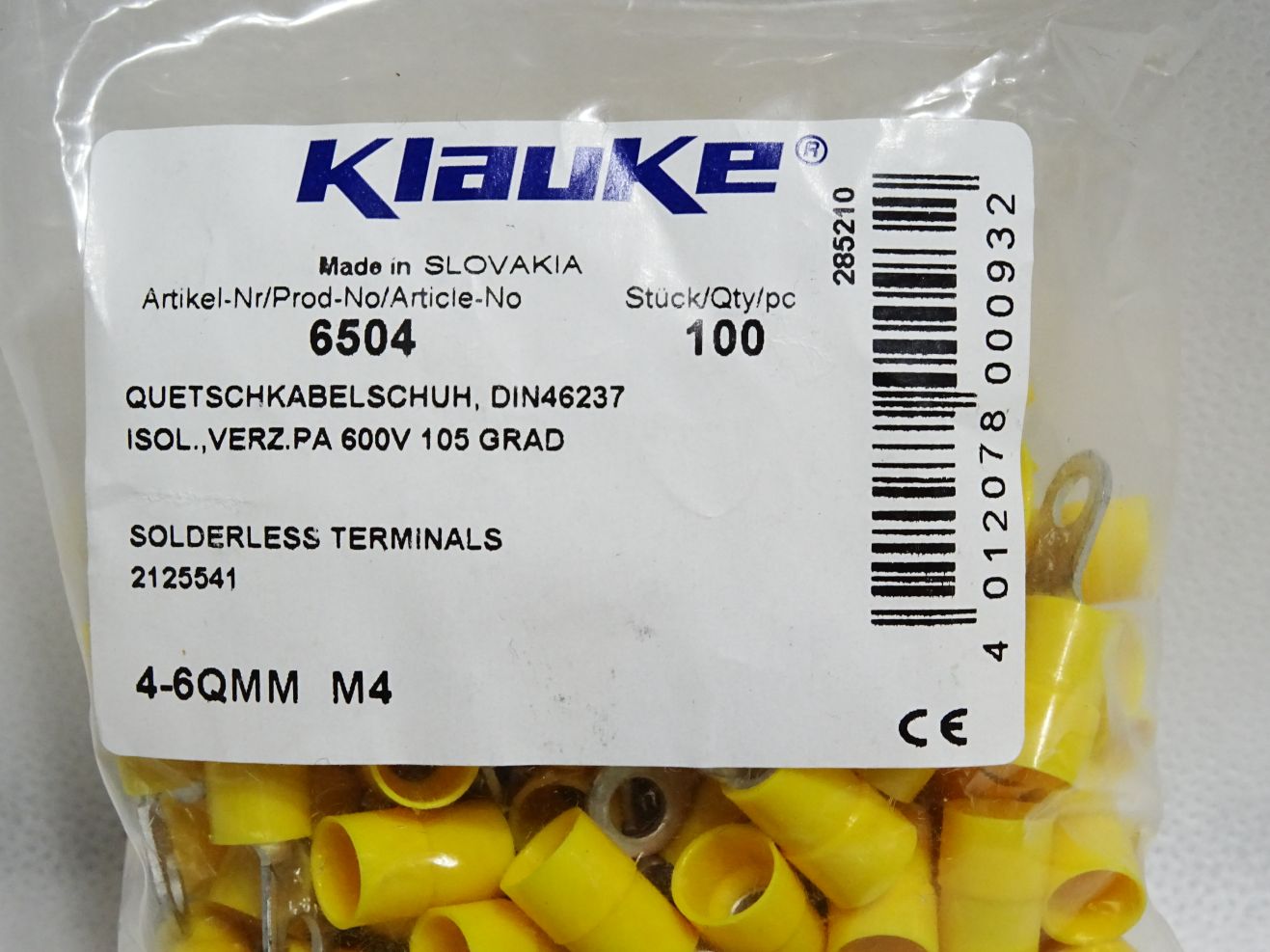 Klauke 6504 Inhalt:100 Stück Isolierte Quetschkabelschuhe gelb / Neu OVP