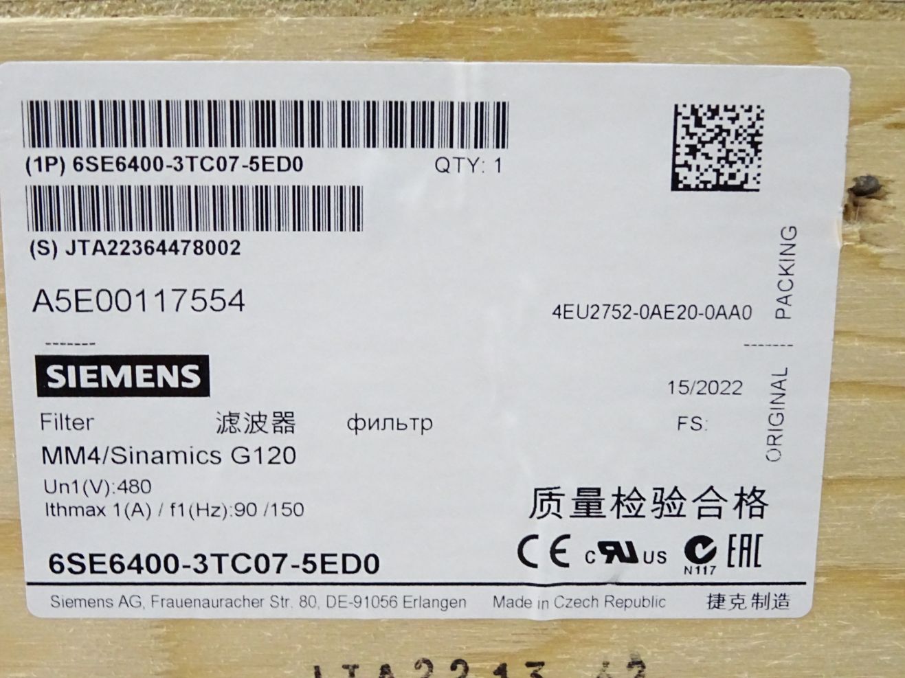 Siemens Ausgangsdrossel MM4 Sinamics G120 6SE6400-3TC07-5ED0 /Neu OVP versiegelt