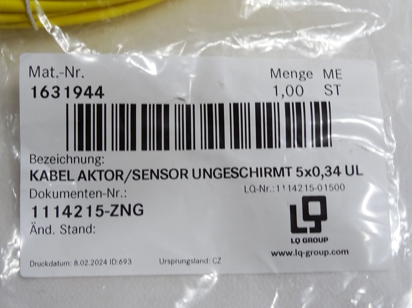 LQ Group 1631944 1114215-01500 Kabel Aktor/Sensor ungeschirmt 5x0,34 UL Neu OVP