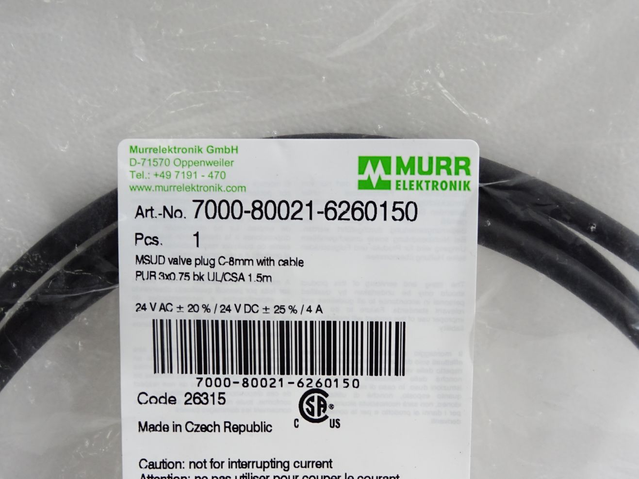 Murr Elektronik Kabel 7000-80021-6260150 / Neu OVP