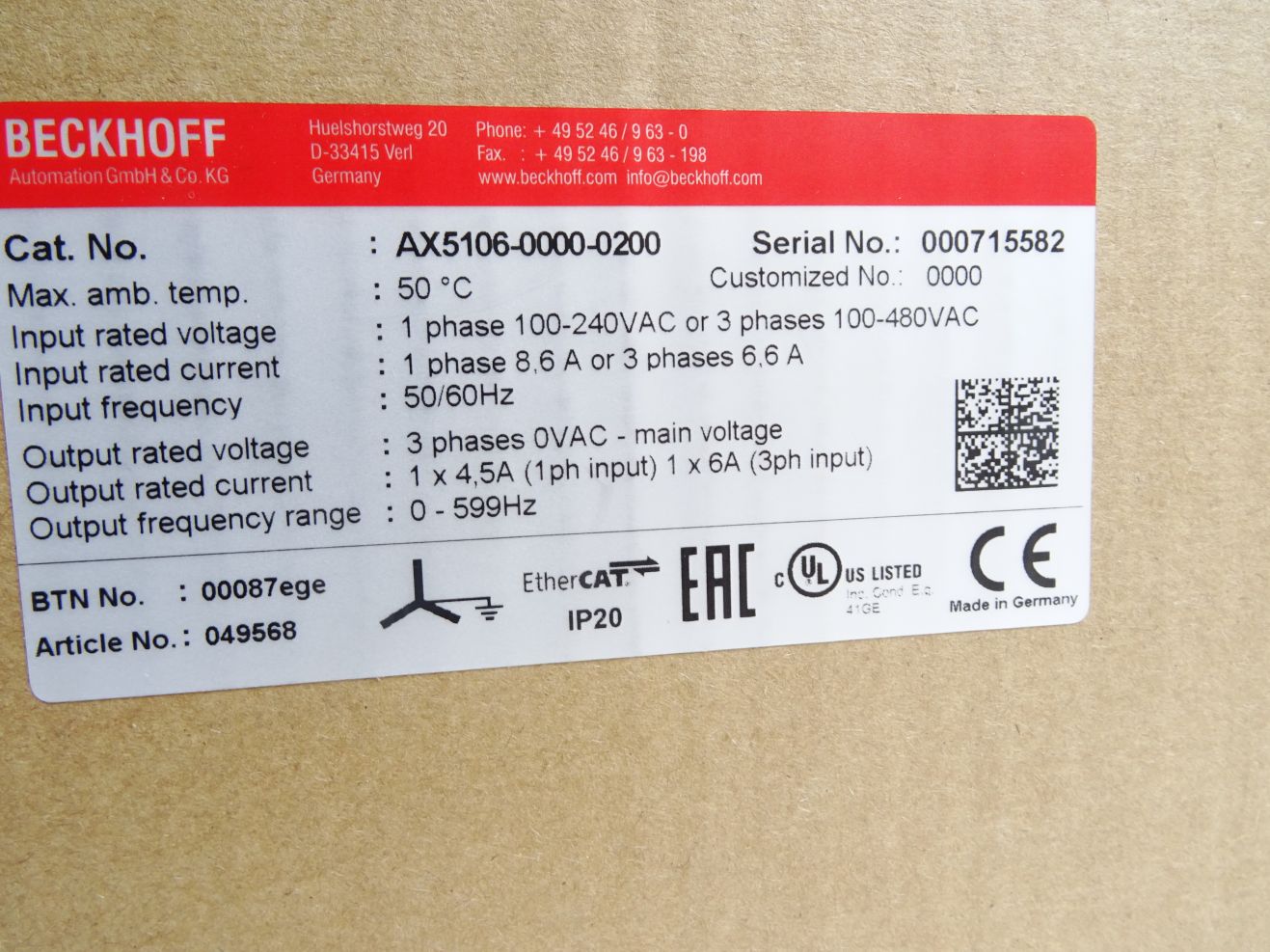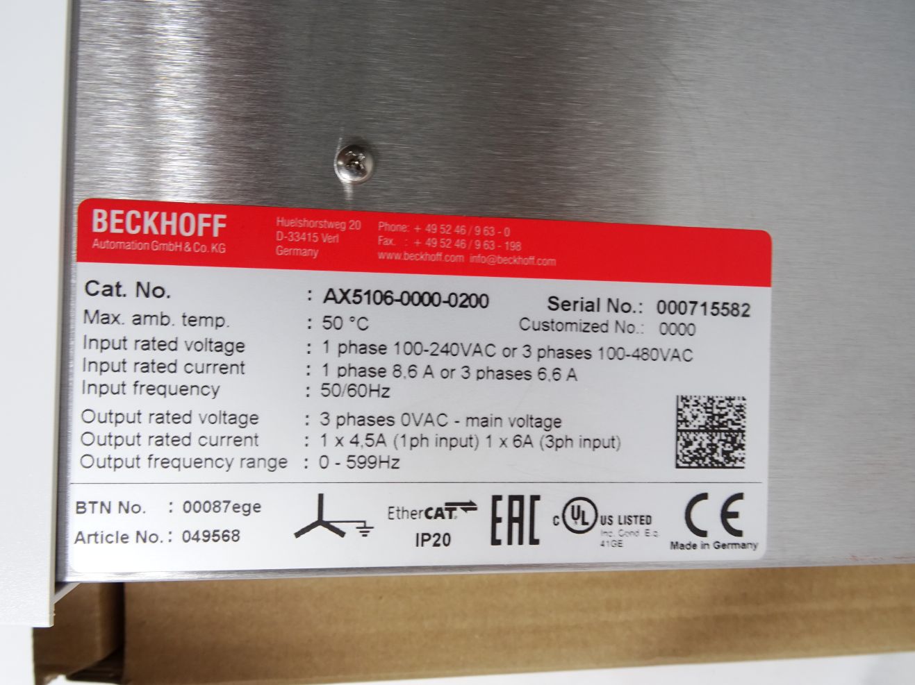 Beckhoff AX5106-0000-0200 Digital Kompakt Servoverstärker 1-kanalig / Neu OVP