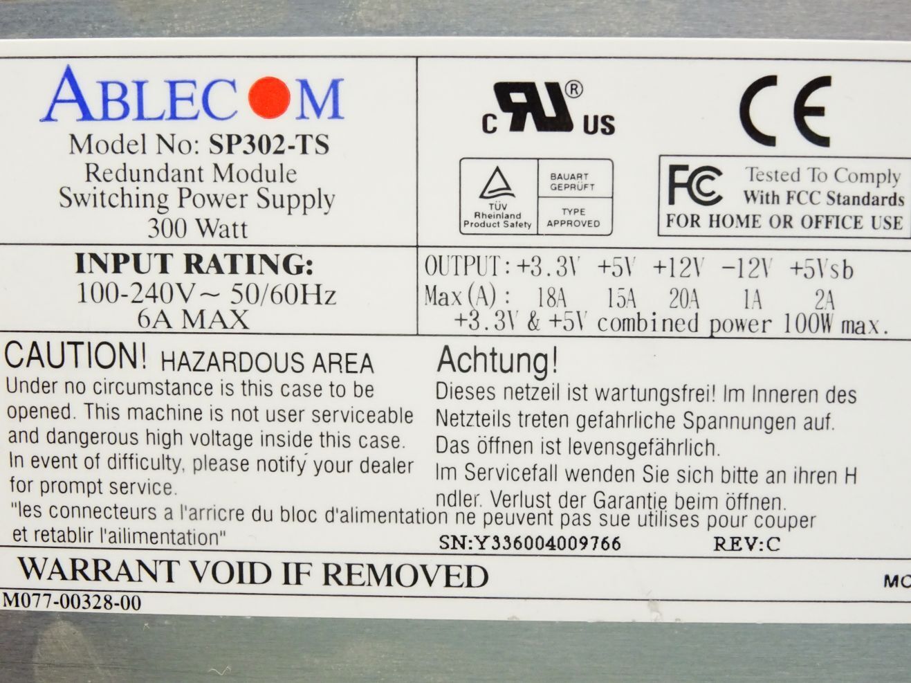 Ablecom SP302-TS Switching Power Supply 300W