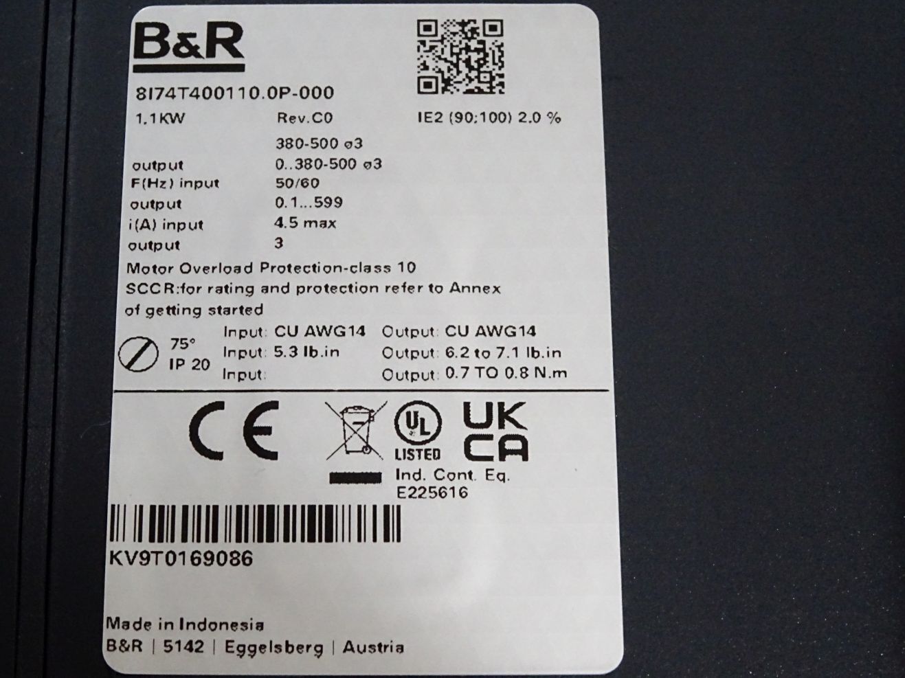 B&R 8I74T400110.0P-000 Rev.C0 1.1kW ACOPOS inverter P74 / / Neu OVP