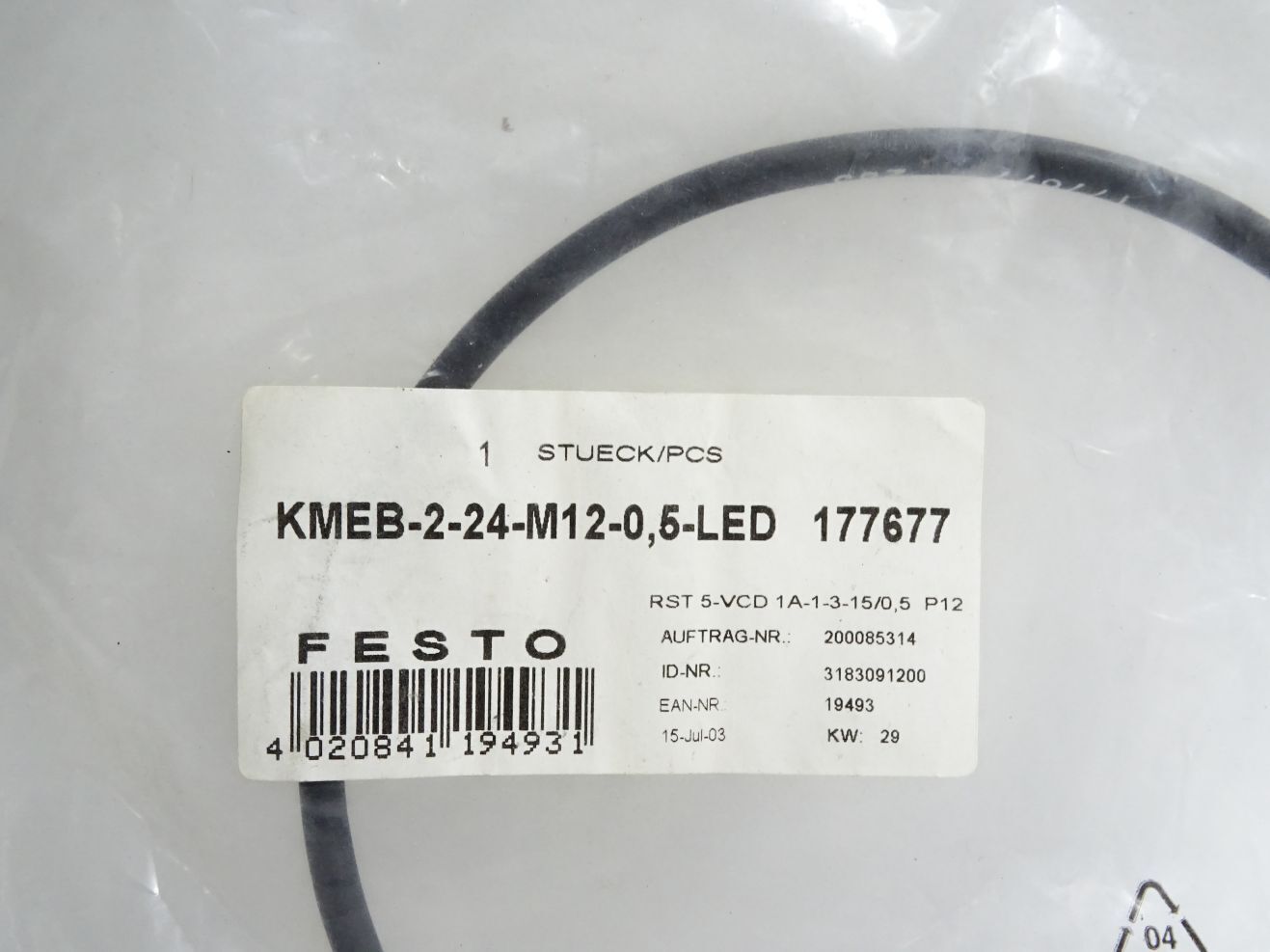 Festo 177677 KMEB-2-24-M12-0,5-LED Steckdosenleitung / Neu OVP