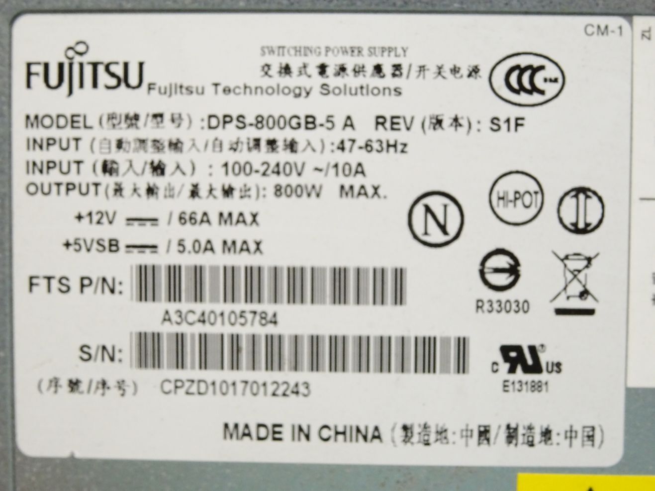 Fujitsu DPS-800GB-5 Power Supply 800W