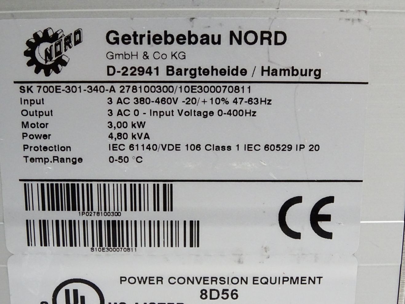 Getriebebau NORD SK700E-301-340-A 278100300/10E300070811 3kW - Defekt