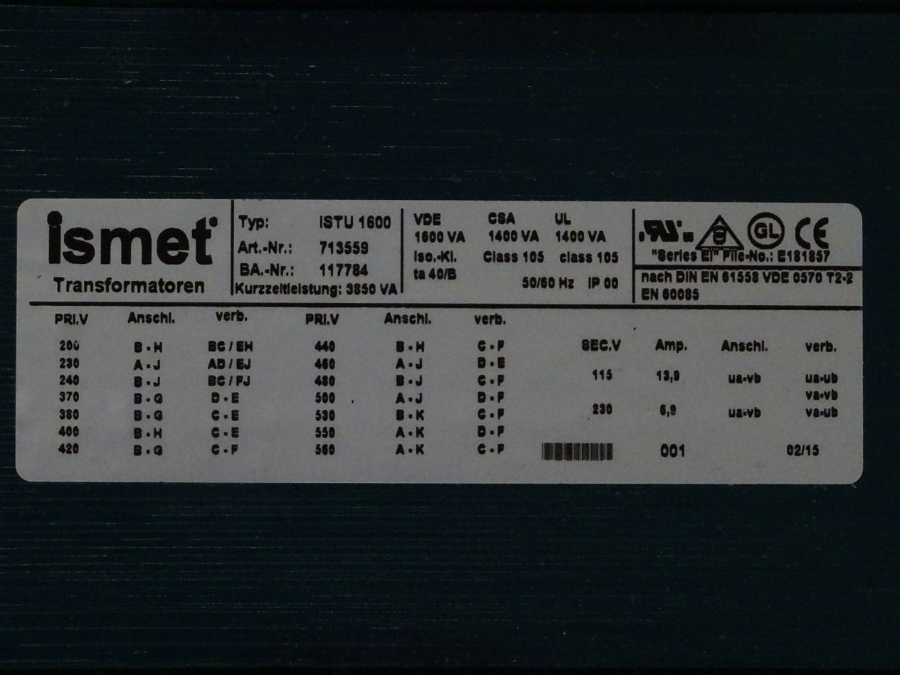Ismet Transformatoren ISTU1600 / 713559 / Neu