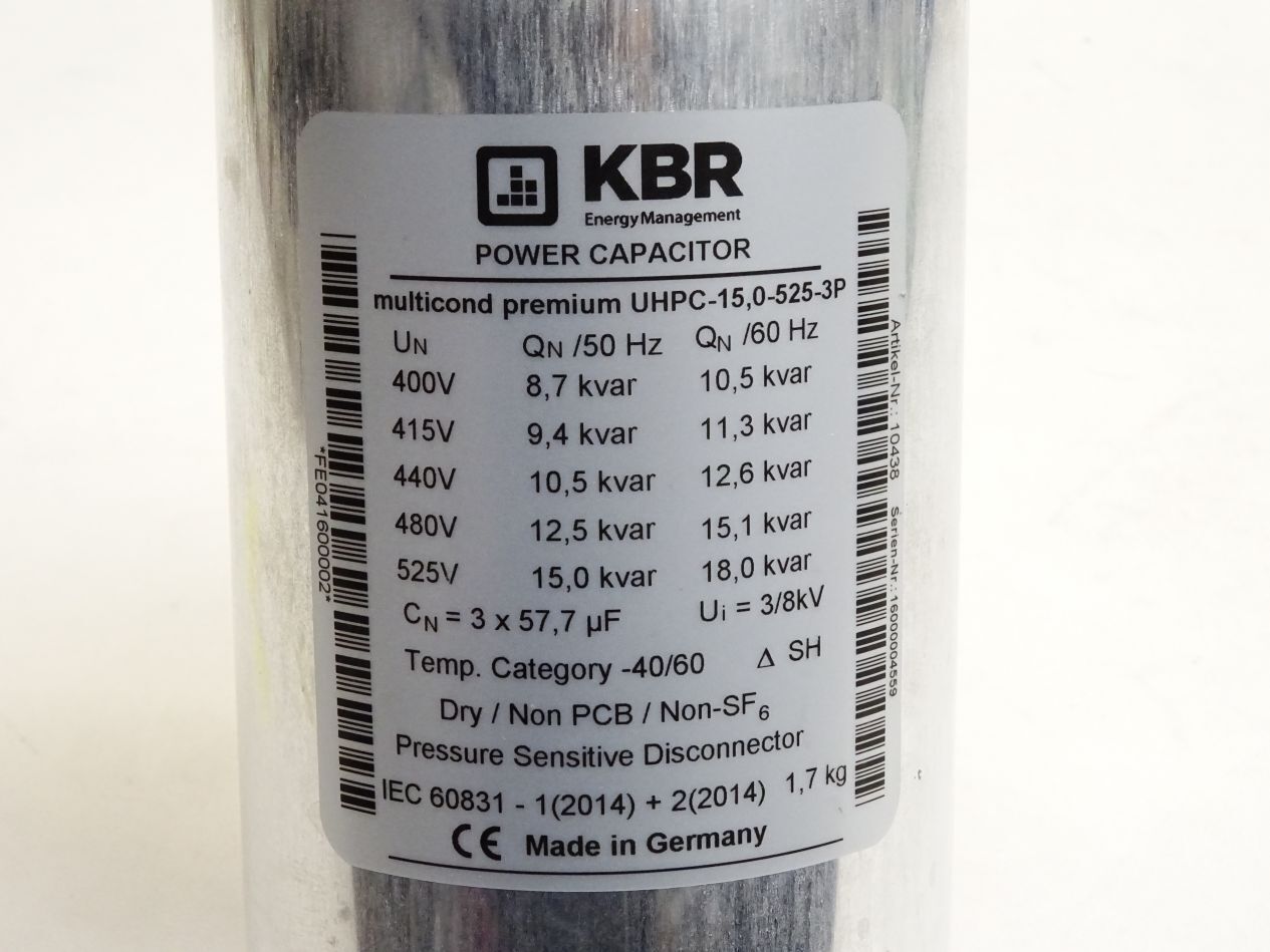 KBR Power Capacitor 400V 50Hz 8.7kvar multicond premium UHPC-15,0-525-3P