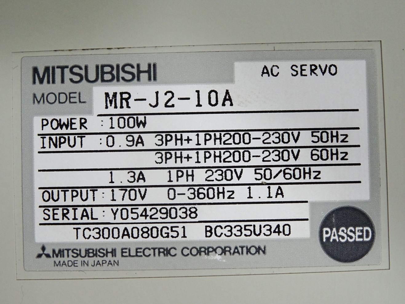 Mitsubishi AC Servo MR-J2-10A 100W