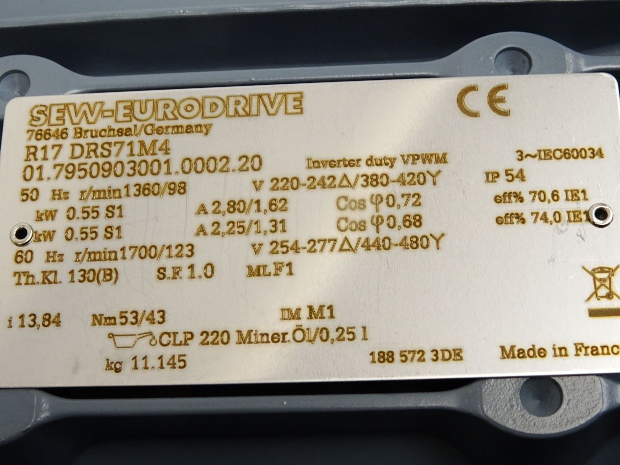 SEW Eurodrive Getriebemotor R17 DRS71M4 1360/98r/min 0.55kW i 13.84 / Neu