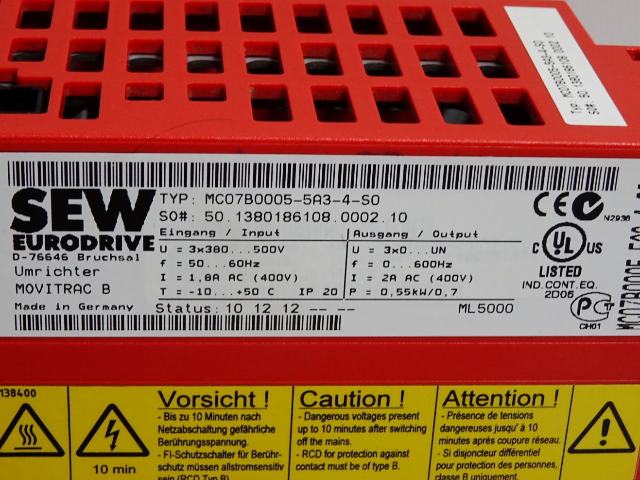 SEW Eurodrive Umrichter Movitrac B MC07B0005-5A3-4-S0 0.55kW