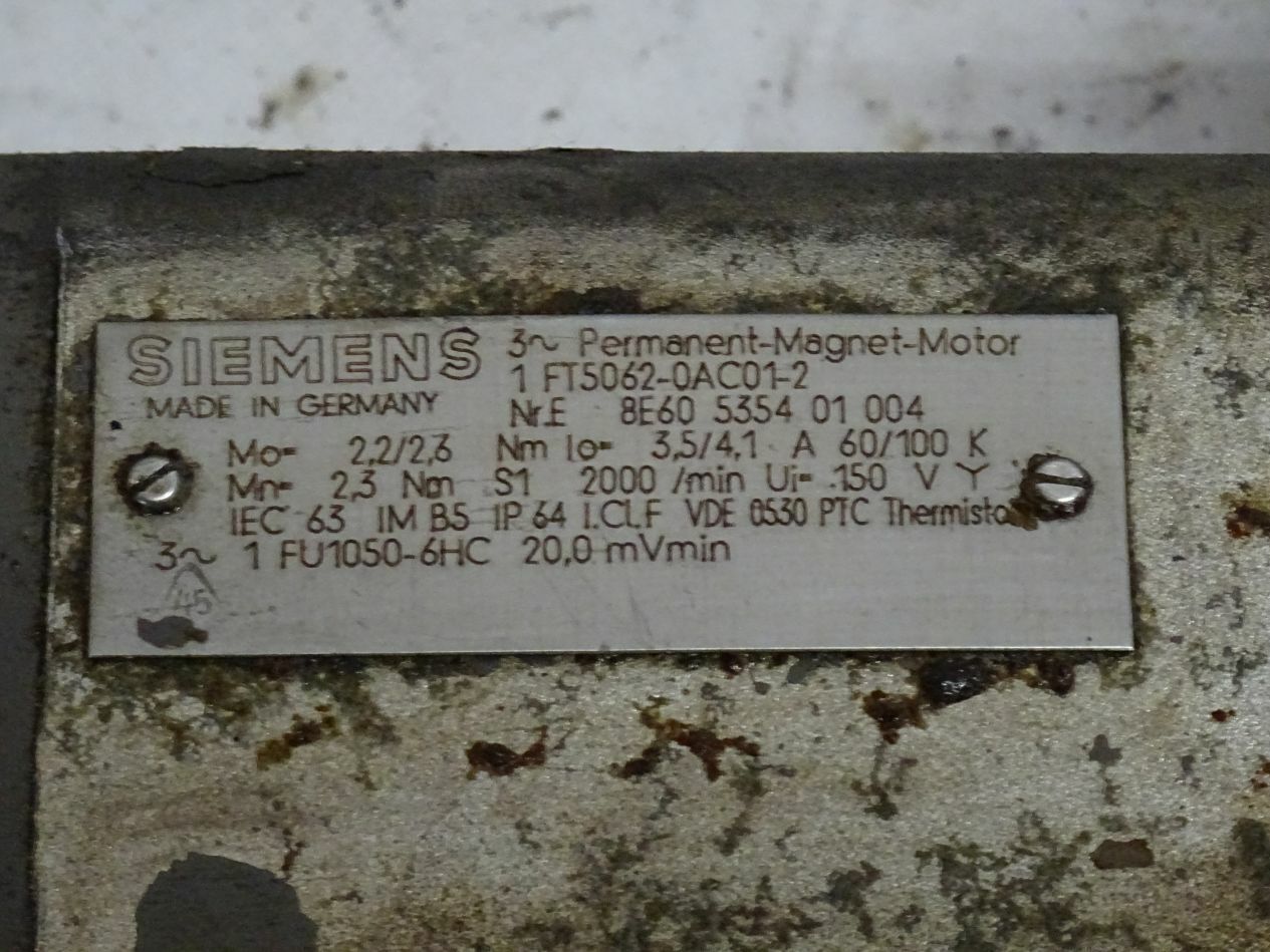 Siemens 1FT5062-0AC01-2 Permanent Magnet Motor 2000 Rpm / 1 FT5062-0AC01-2