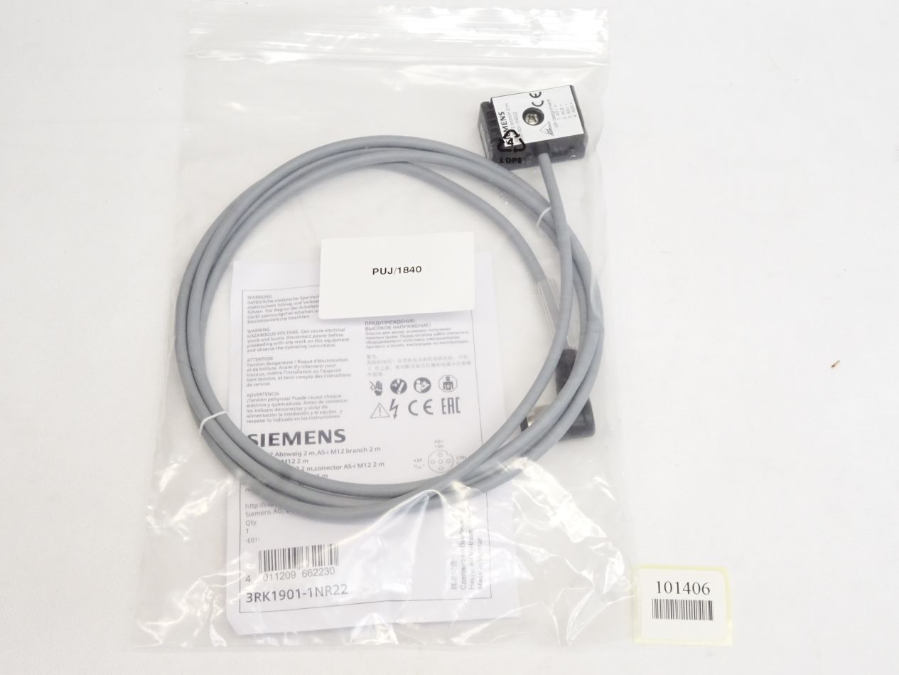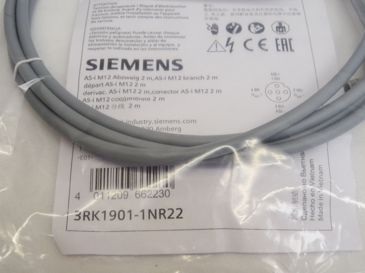 Siemens 3RK1901-1NR22 AS-Interface M12 Abzweig 2m Kabel / Neu OVP
